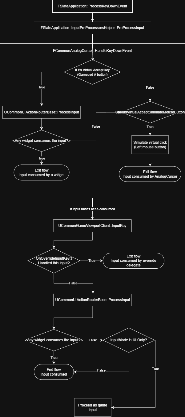 Below is a VERY SIMPLIFIED flow chart of how Unreal routes input. I’ve removed everything unnecessary and kept only what matters for debugging CommonUI issues.